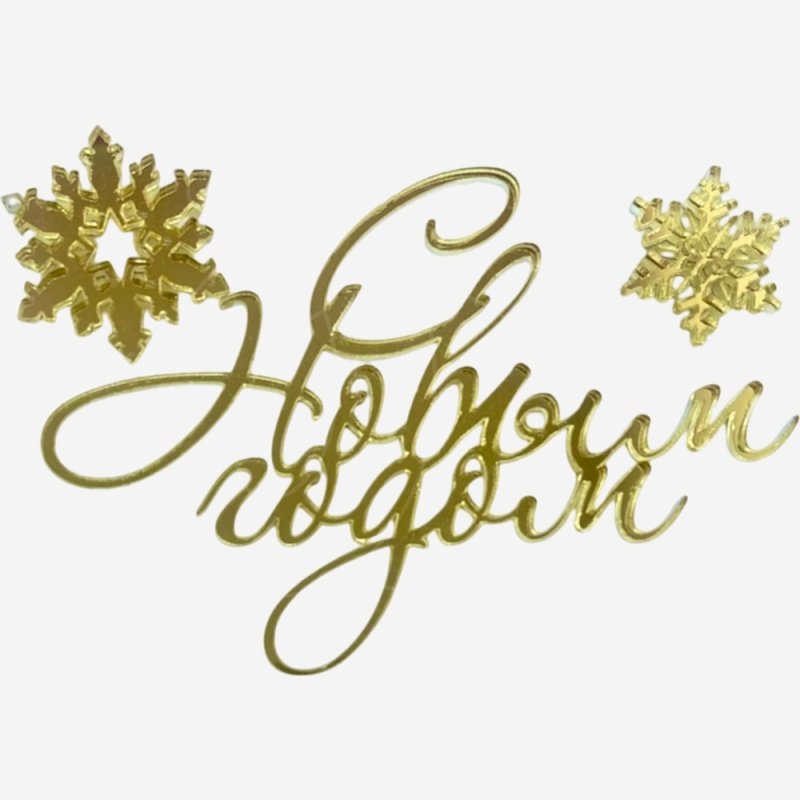 Топпер декоративный акриловый "Новый год" Золото 11х7 см