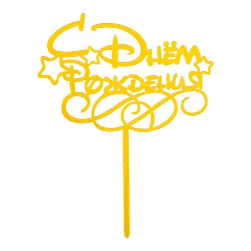 Доставка Топпер декоративный акриловый "С Днём Рождения. Звёздочки" Золото из магазина в вашем городе: